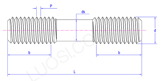Rozszerzone podwójne kołek o równej długości jako całość jest smukłym metalowym prętem z gwintami o równej długości na obu końcach, a nici te przebiegają przez oba końce. Środkowa część to zwykle gładka i prosta pręt. Długość można dostosować zgodnie z faktycznymi potrzebami.