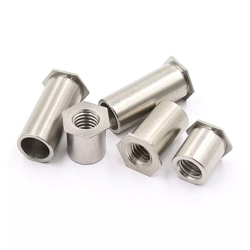 Kolumna z sześciokątną nitonakrętką ze stali nierdzewnej doskonale radzi sobie z dużymi obciążeniami statycznymi i dynamicznymi. Jego sześciokątny kształt naprawdę pomaga zwalczać siły skręcające, więc nie poluzuje się pod wpływem wibracji, co jest bardzo ważne w samochodach i maszynach. Po zainstalowaniu duże wybrzuszenie powstające z tyłu rozkłada siły zaciskające na większym obszarze, co zmniejsza naprężenia materiału.