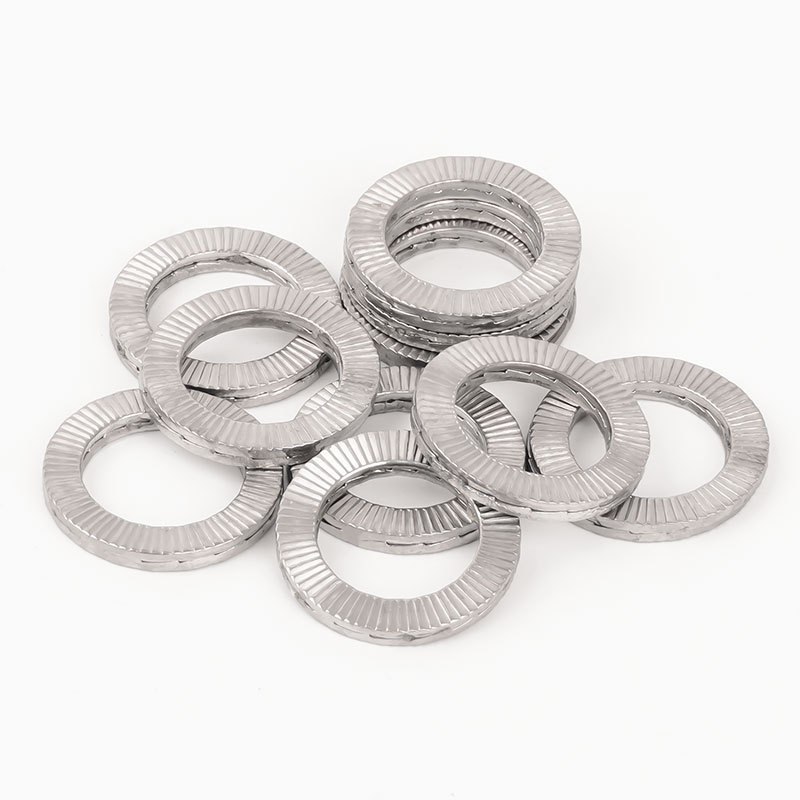 Podwójne podkładki o dużej wytrzymałości nie wyglądają jak zwykłe płaskie podkładki. Te są okrągłe, z dwoma końcami zgiętymi-i dlatego nazywane są „podwójnie”. Po dokręceniu śruby te wygięte końce wciskają zarówno śrubę, jak i powierzchnię, co pomaga powstrzymać się od rozluźnienia.